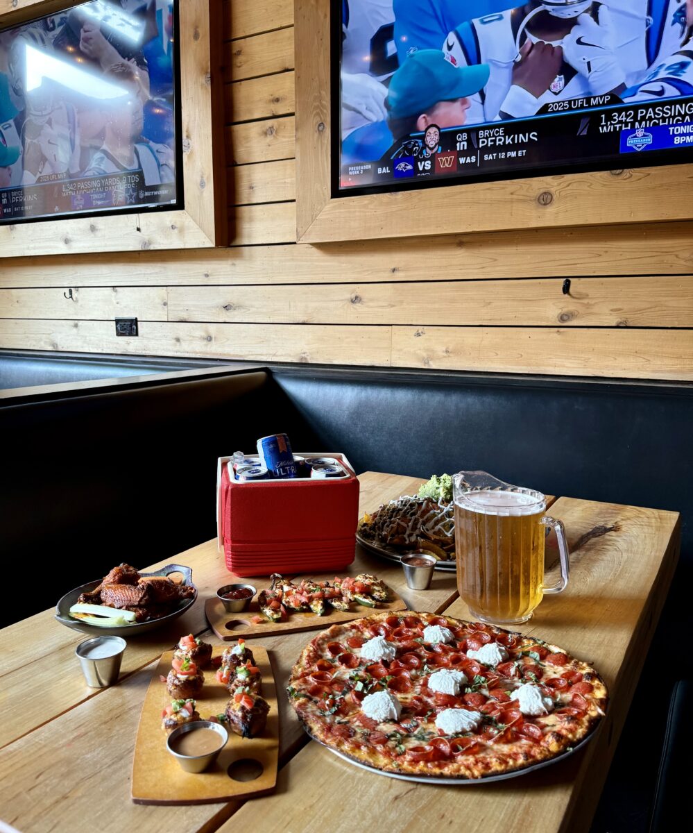 POTATO SKINS (GF) pulled pork, bacon, cheddar, sour cream, green onion, tomato & bbq honey mustard10