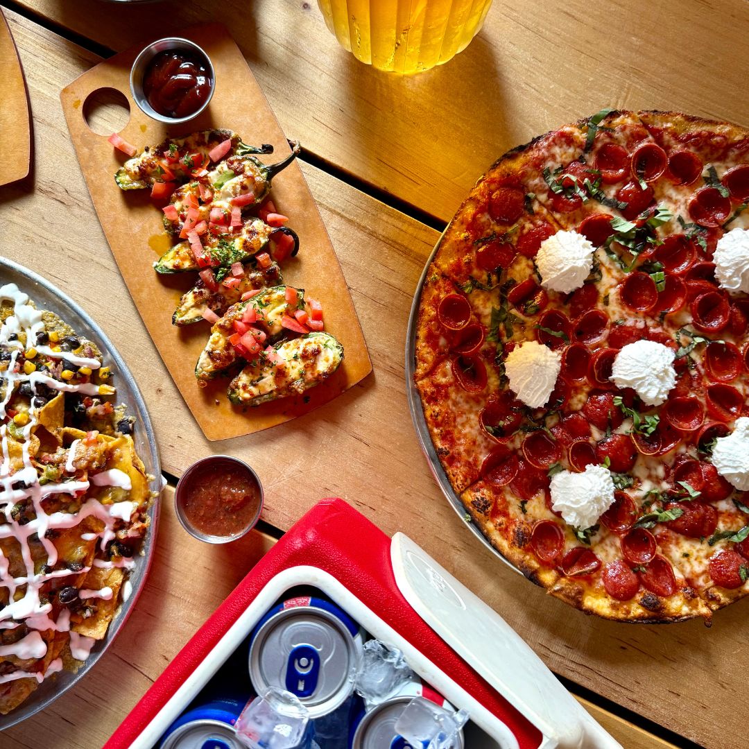EVERYTHING BAGEL 'ZA heirloom tomatoes, mozzarella provolone, ricotta, basil, everything seasoning, garlic & olive oil base *add egg for an additional chargesmall 16tavern 28large 28party 37